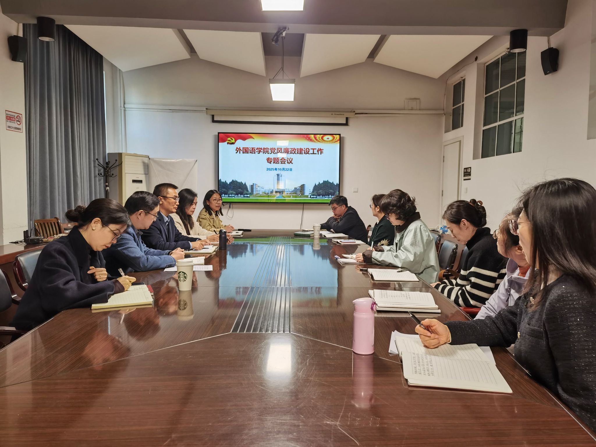 10月22日下午,外国语学院组织召开了2025年秋季学期党风廉政建设与反腐败工作专题会议。会议由学院党委书记李炜主持,学院理论学习中心组全体成员参加。