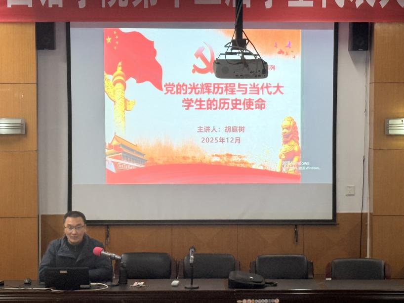 为引导青年学生从党的历史中汲取奋进力量,明确时代使命,2025年12月9日,外国语学院在品学楼2210开展主题为“党的光辉历程与当代大学生的历史使命”的党课学习活动,本次党课由外国语学院院长胡庭树主讲,外国语学院入党积极分子参与此次学习。