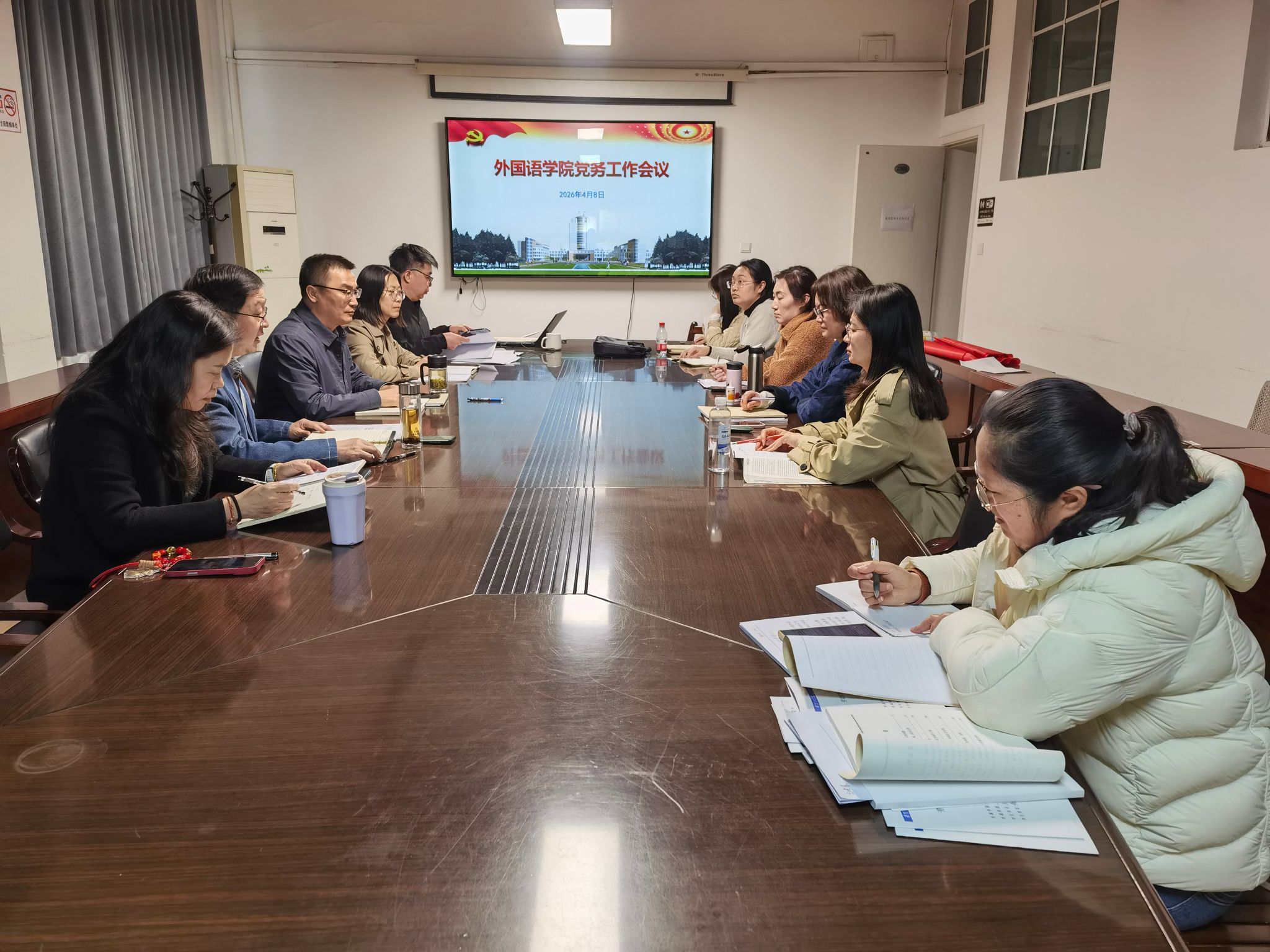 为深入贯彻落实新时代党的建设总要求,全面提升外国语学院党建工作质量,4月8日下午,外国语学院在品学楼2301会议室召开党务工作会议,学院党委书记李炜主持会议。