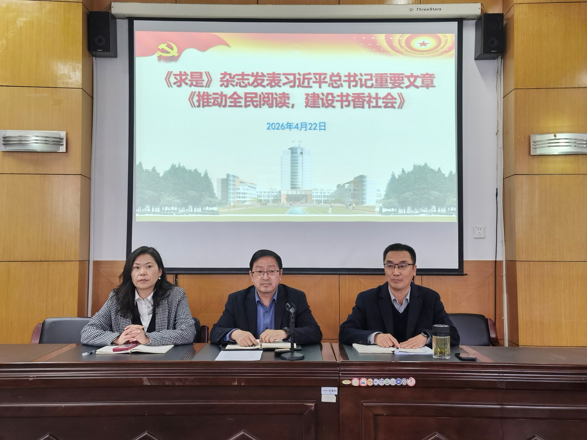 为深入学习贯彻习近平总书记关于全民阅读的重要论述精神,持续推进书香校园建设,4月22日,外国语学院在品学楼2210报告厅召开全院教职工学习会,传达学习《求是》杂志发表的习近平总书记重要文章《推动全民阅读,建设书香中国》。会议由外国语学院党委书记李炜主持,全体教职工参加了此次会议。