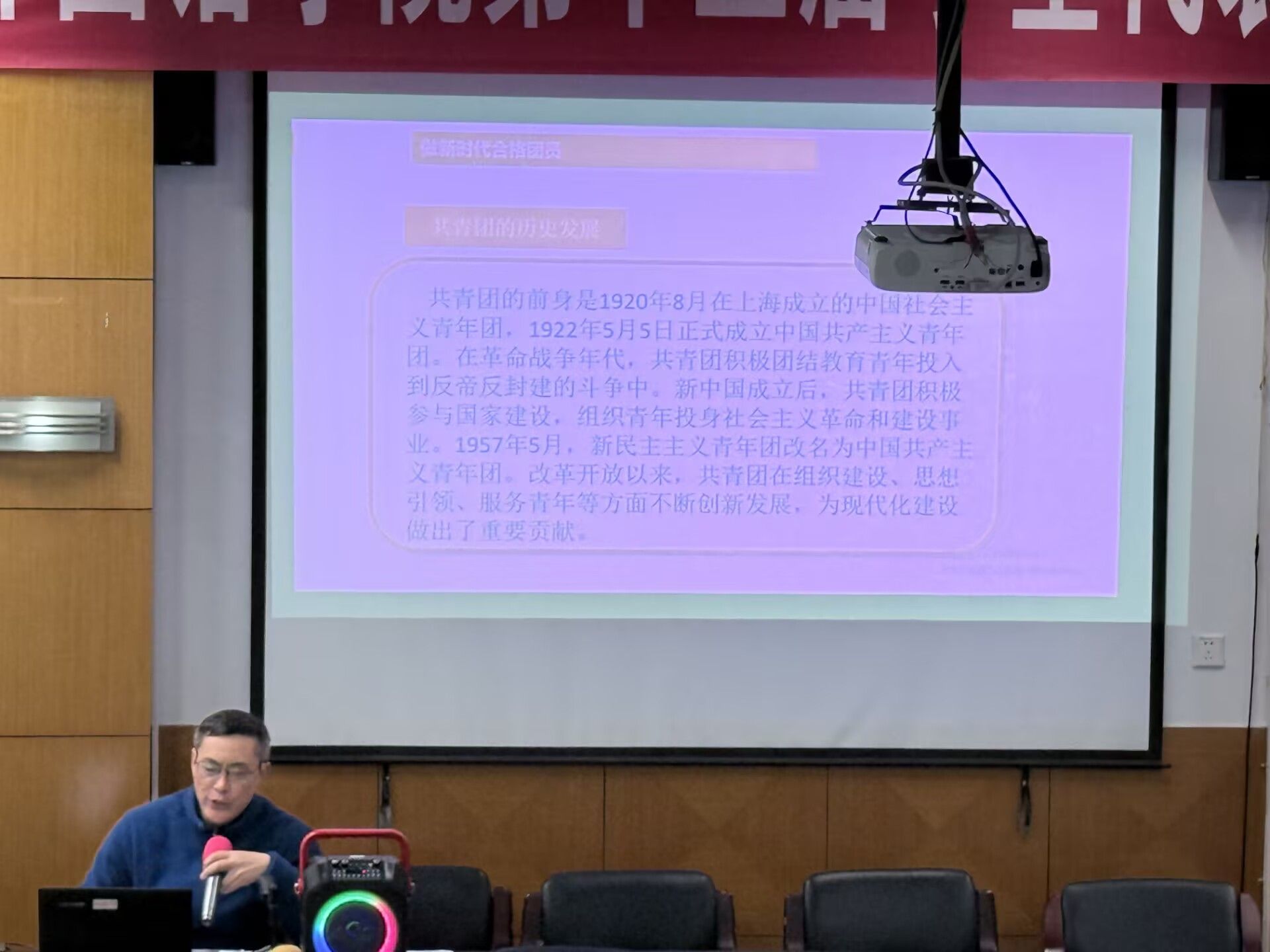 为宣扬新时代合格团员精神,2025年10月28日19:00,外国语学院于2210报告厅开展“做新时代合格团员”的主题团课,本次团课由校关工委成员周志国担任主讲人,外国语学院各年级优秀学子参加。