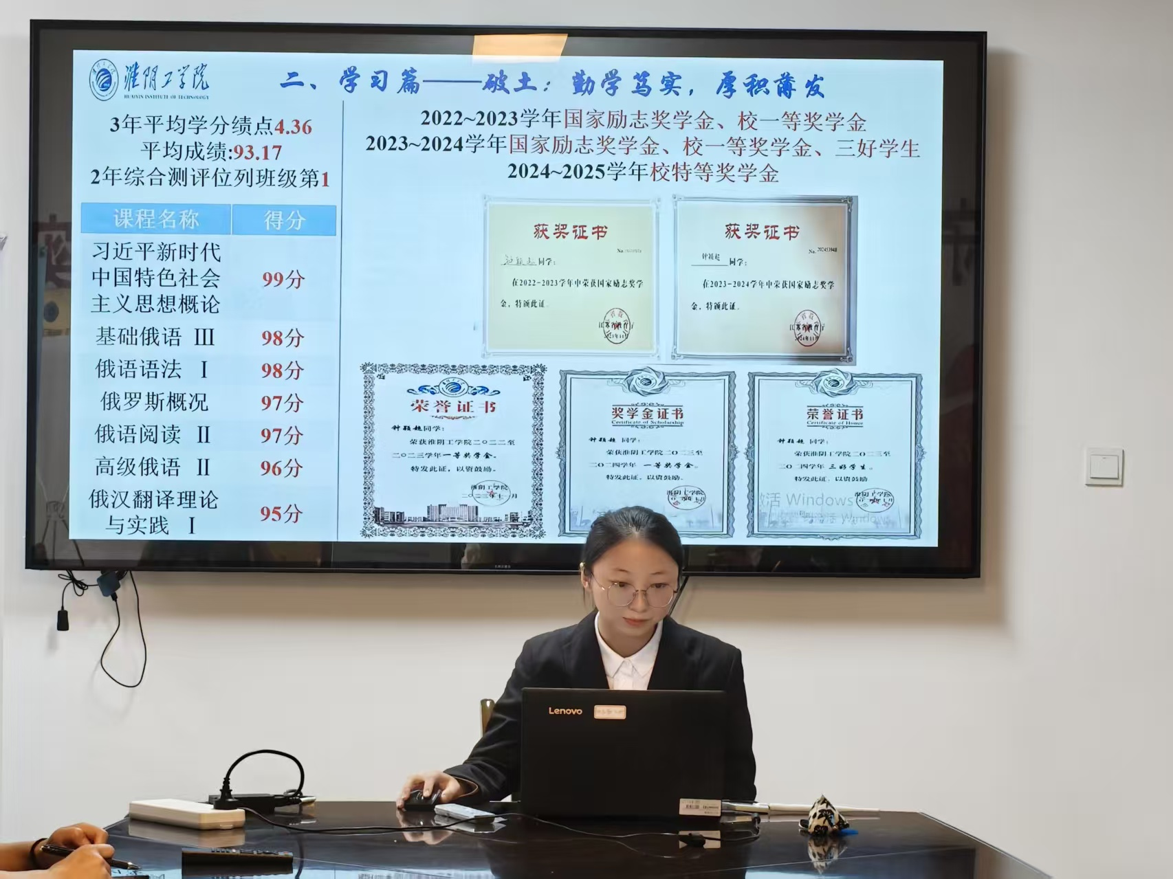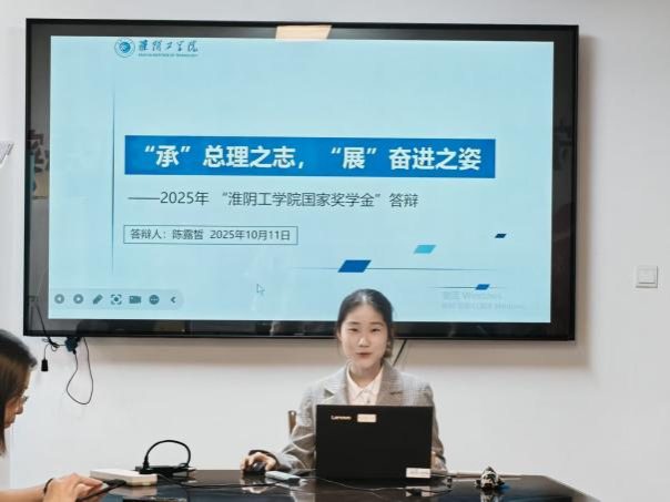 为发挥榜样引领作用,营造崇学上进的氛围,2025年10月11日中午12点30分,外国语学院在品学楼2301会议室开展了国家奖学金答辩评审会。本次评审由外国语学院党委副书记、副院长祖维主持,辅导员孙伶俐、朱胜男、夏雁军等参与评审。