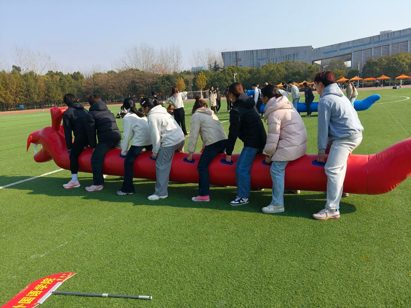 在力与毅的终极角力场上,拔河比赛点燃全场。队员们紧握长绳,伴随着震耳欲聋的号子声,将全身力量拧成一股绳。每一次寸步不让的僵持,每一次竭尽全力的爆发,都是诠释了团队凝聚力。