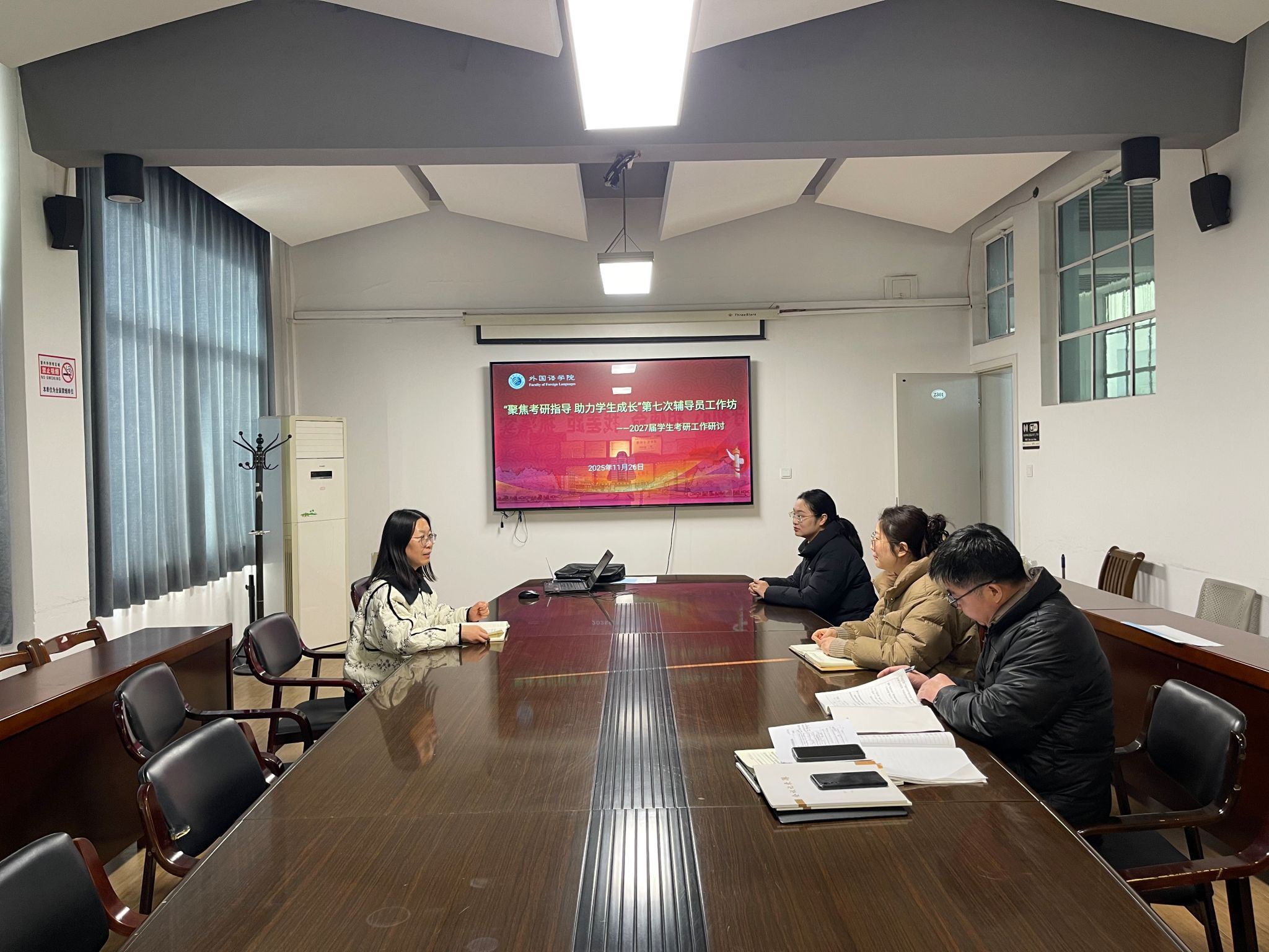 为提升考研指导体系建设,系统提升学生升学竞争力,外语学院于2025年11月26号,开展“聚焦考研指导,助力学生成长”第七次辅导员工作坊,外国语学院全体辅导员参加。通过分类指导、资源整合与全过程陪伴,助力学生科学规划并高效冲刺考研。