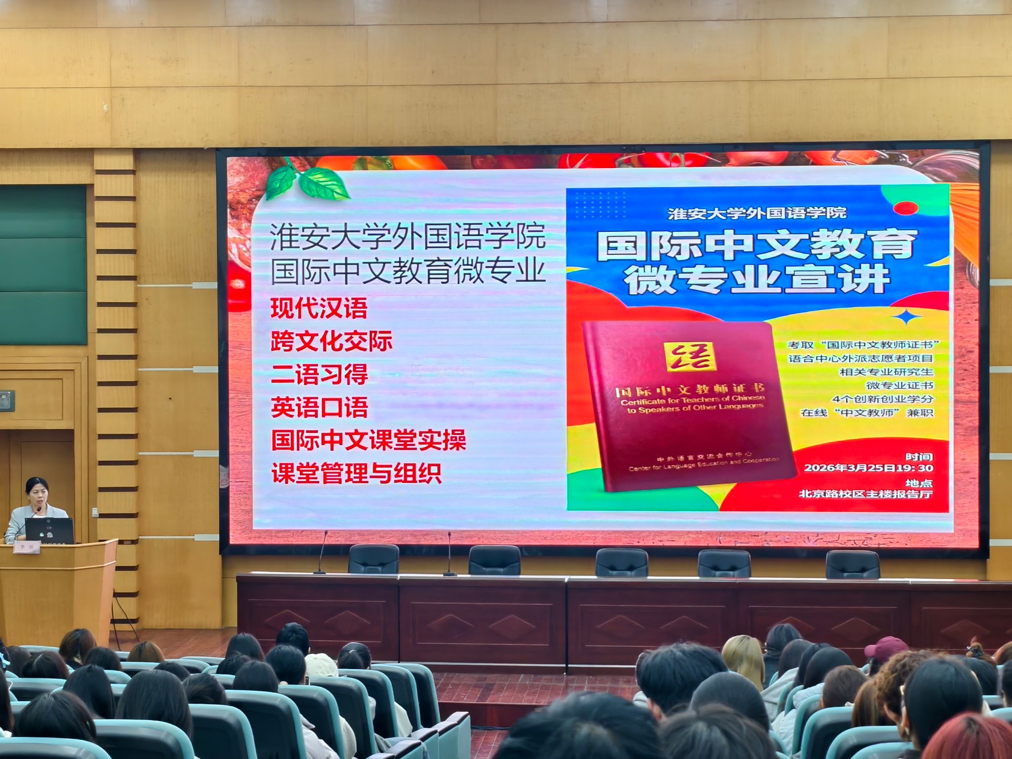 为深化跨学科人才培养模式改革,拓宽学生学业提升与职业发展路径,3月25日晚,外国语学院在尚学楼报告厅举办国际中文教育微专业专场宣讲会,学院副院长李梓主持会议。