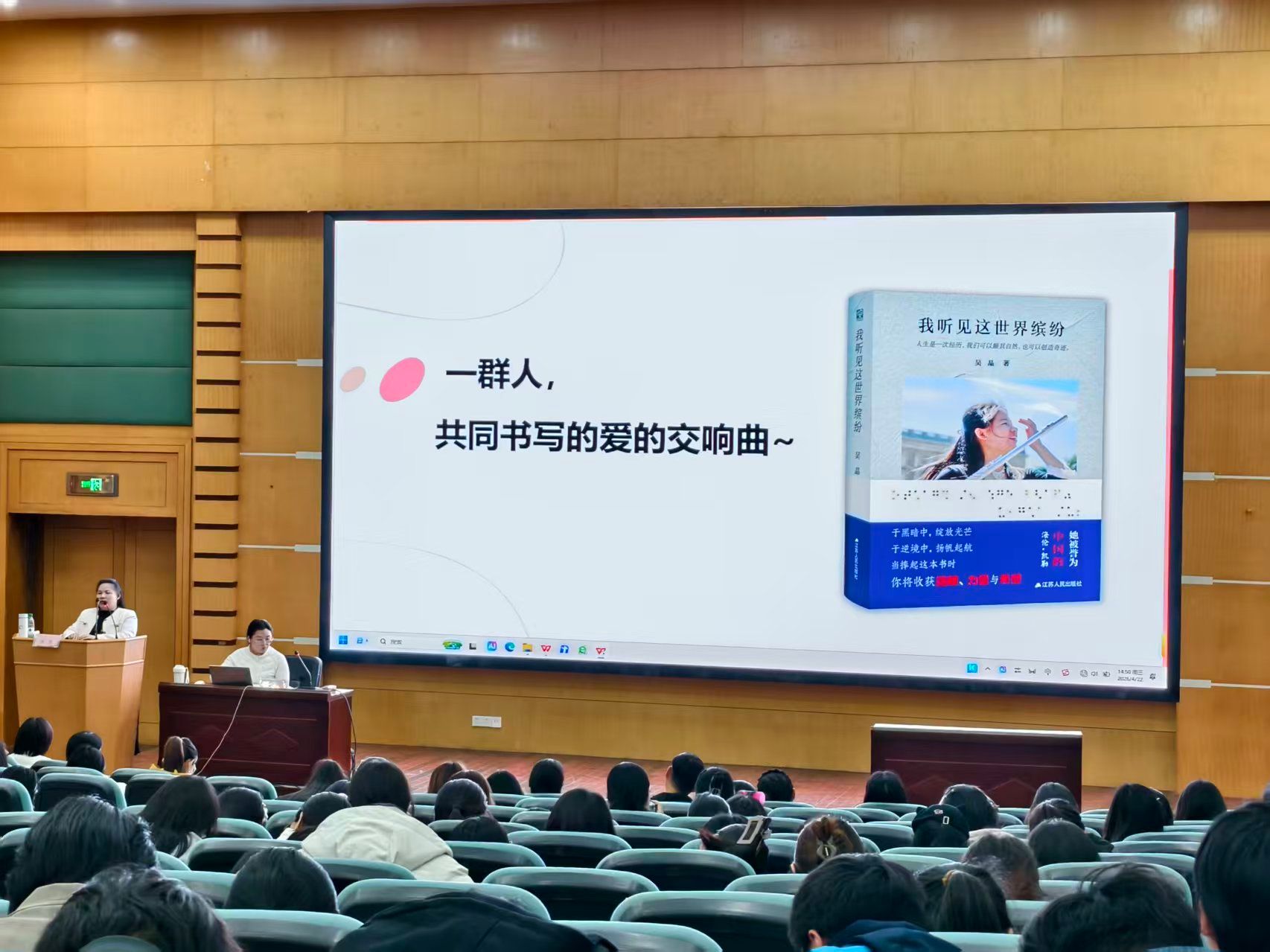 为引导学生树立积极心态、明确成长方向。外国语学院于2026年4月22日下午14:00,邀请了盲人音乐家吴晶在主楼报告厅开展“我听见这世界缤纷”公益讲座,全体大一、大二同学及建工学院、商学院、人文学院部分大一学生参加。