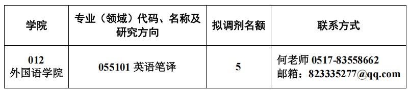 3. 原报考专业为英语笔译(055101)、英语口译(055102)、英语语言文学(050201)、外国语言学及应用语言学(英语考生)(050211)等相关专业均可调剂。